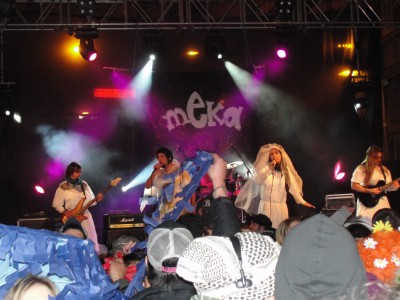Opět La Tribu...ten kytarista v popředí (ve fialovým tričku) měl údajně hodně šťastný den - zrovna se rozvedl a chtěl svůj svatební prsten hodit do davu, ale nešel, potvora :-)