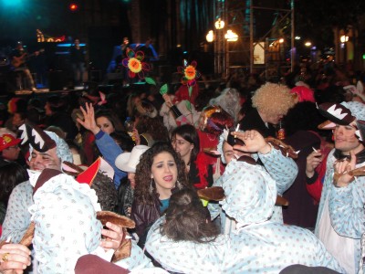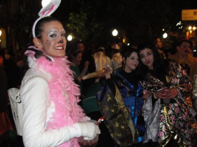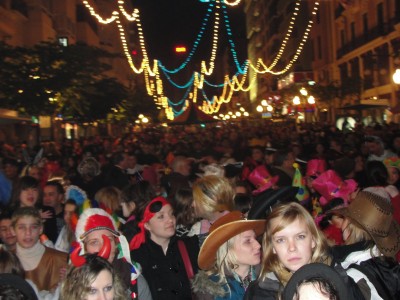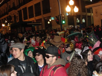 Oficiální začátek Alicante Carnavalu byl už 11.2.2010, ale to jsme ještě nějak nepociťovali. V ulicích sice byla výzdoba, ale večer jsme nikde moc nebyli, takže nevím. Ale už v pátek jsme šli jen na malou obhlídku a nevím, jak ostatní, ale já se vrátila kolem půl 4 na byt. Plno lidí v maskách, venku živý koncerty, průvody a barevně osvětlený ulice.
