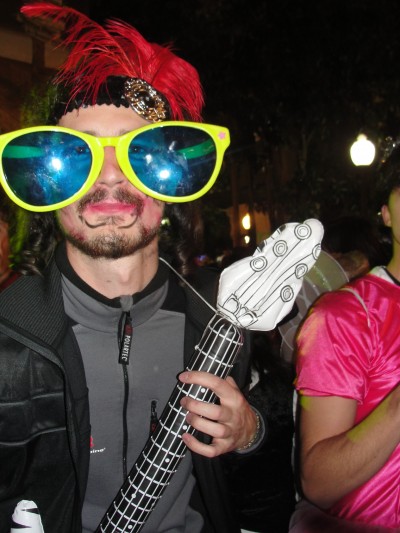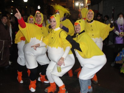 Večer byl ve znamení příprav na karneval. Stavila se Elly, udělaly jsme masky a vyrazily. Jako čekala jsem hodně, ale tohle jsem nečekala. My se ze začátku bály, že naše "masky" budou moc výrazný (v uvozovkách proto, že se to maskama fakt nedá nazvat, po tom, co jsme všechno viděly). Bez masek byly max. 2%lidí a jinak každý něco. Byly tady kuřátka, Avataři, tenisky, cigarety, květinky, neskutečně moc hipisáků, japonci, srdíčka, jahoda, papež (mimochodem nesli ho na speciálním papa mobilu), židi, Sněhurka a 7 trpaslíků (Sněhurka ležela na nosítkách a byl to velkej snědej vousatej chlap), po ulicích pobíhaly bacily chřipky s holýma zadkama, postavičky ze South Parku, Simpsonovi taky, jahůdky, Střihoruký Edward, piráti, jeptišky, andělé, víly,...prostě všechno, na co si kdo vzpomene. Fantazie místních i návštěvníků očividně nezná mezí. Ulici La Rambla, po které chodím hodně často, jsem nepoznávala. Uprostřed byl obrovský provizorní bar-lehce předražený, ale s tím se počítalo. A na obou koncích pódia, kde vystupovala živá kapela. Karneval byl prostě parádní a vydrželi jsme tady až do 6-ti do rána. A to ulice zdaleka nebyly prázdný.