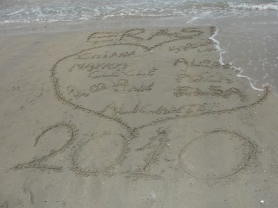 Některý holky už odjížděly, tak jsme nakreslily na památku srdce...bohužel zrovna přicházel příliv, takže vydrželo asi 3 minuty:-)