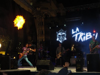 Skupina La Tribu - technicky nebyli špatní, kdo si potrpí na něžný "chlapy" v uplých riflích a se silnými gesty, tak by se mu určitě líbili...pro mě to bylo, jakoby John Travolta v Pomádě žil v dnešní době, hrál v nějaké "husté rockové kapele" a na všechny strany vyplazoval jazyk a ukazoval fakáče...ale tak na holky to očividně zabíralo a ohňová show nebyla špatná:-)