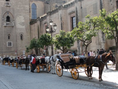 Kousek od katedrály - tady bylo "parkoviště" všech těch drošek a povozů s koňma, který pak jezdily po Seville a vozily turisty