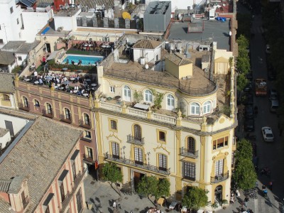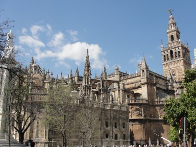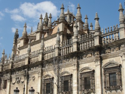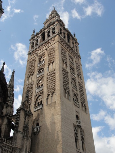 Giralda-původně minaret mešity, dnes zvonice katedrály a symbol města-název nese podle korouhvičky na střeše - giraldillo. Věž je vysoká necelých 100 metrů a zajimavostí je, že uvnitř nejsou schody, ale rampy, po kterých se stoupá až nahoru. A další zajimavostí je, že místní si téhle věže hodně váží a platí nepsané pravidlo, že žádná stavba nesmí být vyšší než tahle Giralda. To teda platilo až dodnes, brzy se má stavět nějaká nová věž, která i přes značné protesty místních bude vyšší...