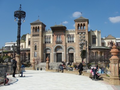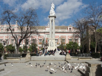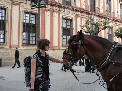 Náš výlet do Sevilly nezačal zrovna nejšťastněji. Jela jsem s Clémence a měly jsme letět letadlem hodně brzo ráno, tak jsme si říkaly, že bude lepší přespat na letišti, protože autobusy v noci nejezdí. Jenže poslední autobus, co měl jet prostě nejel. Chvilku jsme čekaly, pak se vrátily domů, nastavily budíky na 4 hod. ráno a usnuly. Ráno naštěstí bez výrazných komplikací. Taxík nás za 16 euro dovezl na letiště (tahle cesta taxíkem na letiště byla pomalu dražší než letenka do Sevilly a zpátky). Jenže krátce po tom, co jsme přistáli v Seville se nám vyskytl další problém. Původně plánované ubytování totiž bylo přes couchsurfing u jedne holčiny ze Sevilly. Domluvila si s nama schůzku, všechno jsme zařídili, já ji dala číslo a dobrý. Jenže tahle slečna se ukázala jako naprosto nespolehlivá a nejen, že na schůzku nepřišla, ale navíc se od té doby ani neozvala. Takže nám nezbývalo nic jinýho, než vymyslet nějakou alternativu. Jaké štěstí, že se nám na couchsurfing ozvalo víc lidí a i když jsme je odmítly, tak nám napsali kontakty-pro jistotu. Vybraly jsme hned první a jak se ukázalo, naše volba byla hodně šťastná. Jednalo se totiž 3 kluky(2 italy a jednoho španěla), co pracovali v baru a navíc studovali architekturu, takže o tomhle městě věděli víc, než běžní obyvatelé. Ubytovaly jsme se teda u nich v bytě a šly obhlídnout město.
