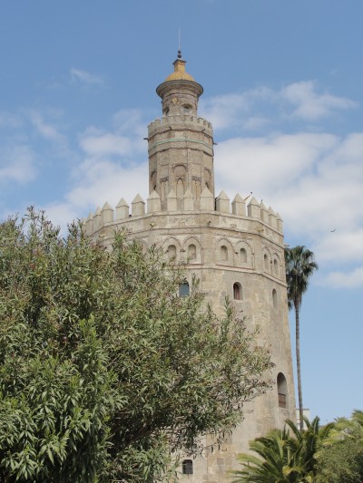 Druhý den jsme vyrazily relativně brzo a stihly jsme toho fakt hodně. První naše cesta vedla k Torre del Oro - zlatá věž. Uvnitř je muzeum námořnictva a na vrchu měl být výhled na město, ale vzhledem k plexisklu, které bylo cca 1m od cimbuří a tlustému cimbuří s malými mezerami jsme nic neviděly.