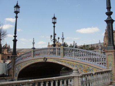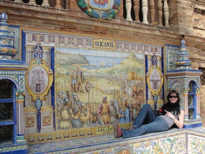 Plaza de Espaňa-je to velikánský půlkruh, který je ohraničen pompézním Palacio de Espaňa, který teda nevím k čemu slouží. A ve vnitřní části tohoto paláce jsou vykachlíkované lavičky a na nich zobrazena různá španělská města. Tohle je samozřejmě fotka u Alicante:-)
