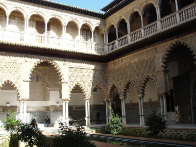 Kousek od tohoto náměstí byl náš poslední a největší cíl - Alcazar. Původně rezidence berberské vládnoucí dynastie Alhomadů, po zpětném dobytí města sídlo kastilských panovníků(tak to píšou v průvodci:-) Procházka nádherná, stavba fenomenální a zahrady kolem taky. Zase moc fotek není, protože když jsem to zkusila, tak to nepůsobilo moc dobře a bylo to celý jakýsi plochý. Zdi totiž byly bohatě zdobeny (ani nedokážu popsat čím) a na fotce to moc zastihnout nejde. Je to opět potřeba vidět:-)