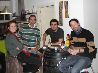 Na byt jsme došli všichni 3 (zbytek se od nás během cesty odpojil). Byli jsme všichni pěkně vyhládlí, tak nám Anto uvařil pravou italskou večeři. Jasně, těstoviny, ale chutnaly dobře jak cyp. A pak ještě koupil speciální španěskej rum, kterej se dal pít jak džus a byl hrozně sladkej a dobrej:-)A pak ještě Clémence udělala francouzský palačinky (pravý francouzský-je totiž přímo z Paříže). Takže další povedený večer:-)