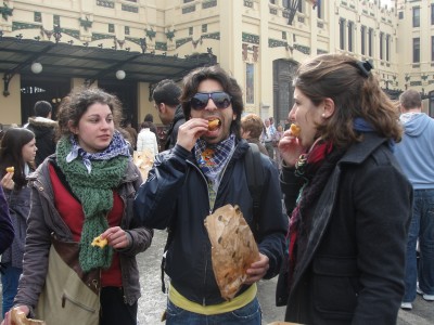 Našli jsme se - to byl jeden z největších úspěchů :-) Tak jsme si na oslavu dali churros a buňuelos - spešl španělské sladkosti připravované přímo na ulici a chuťově nejvíc podobné našim koblihám. Můžou se jíst buď jen s cukrem, nebo s čokoládovou polevou...