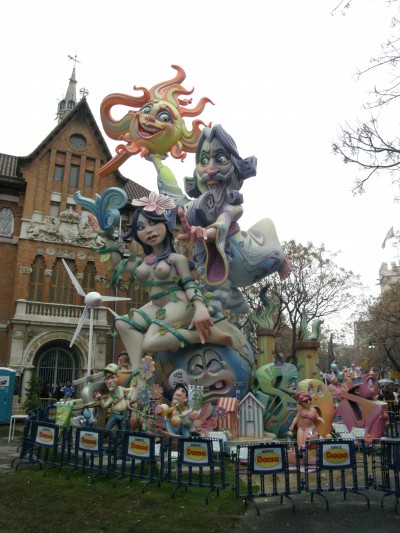 Během dne jsme obcházeli Fallas, popíjeli a pozorovali to dění. Las Fallas jsou zvláštní papírové sochy (směs papíru a lepidla), které jsou po celé Valencii a v jeden den (na svátek sv. José, tzn. 19.3.) a v určitou hodinu se všechny pálí. Některé jsou obrovské (30 - 40 metrů) a hodně se do nich investuje (ty nejdražší i půl miliónu euro!!!). Během toho týdne, co se slaví Fallas jsou ulice přeplněné, všude zní petardy a konají se různé pochody (že prý i 10 - 12 za den). A tady jen pro ukázku některé ze soch: