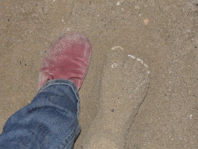 Jsem našla zbytek mušle, který vypadal jak nehet od nějakýho velkýho chlapa, tak jsem k tomu dodělala nohu :-)