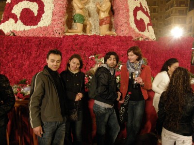 Druhý den jsme šli na prohlídku Fallas. První zastávka byla na jednom z náměstí, kde byl ohňostroj (ve dne!!) a i když jsme došli celkem dost před začátkem, tak jsme se k němu nedostali a nic jsme neviděli, jen slyšeli rany. Po ohňostroji jsme šli k Plaza de Torros, kde jsme měli sraz s další částí naší grupy - Francesco, Fatma, Anna, Pedro a další lidi.