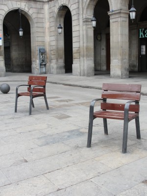 Lavičky pro samotáře na náměstí Plaza Reial-tož taky jsem si sedla:-)