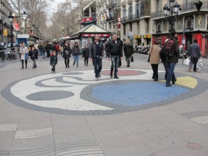 Mozaika Joana Miróa-když jsem šla po poprvé kolem toho, tak mě napadlo, že to je jeho dílko-později jsem si to potvrdila i v průvodci, tak jsem na sebe byla náležitě pyšná, že jsem to poznala:-)