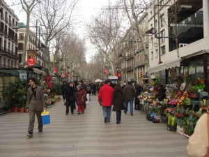 Ulice La Rambla - plná květin, lidí, prodejců a umělců-tady jsem měla hotel